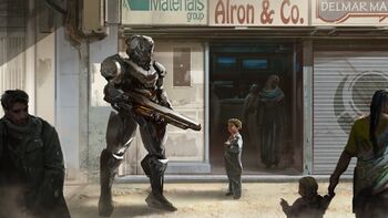 - La quatrième illustration de la nouvelle est tirée d'un concept-art pour Halo Infinite.